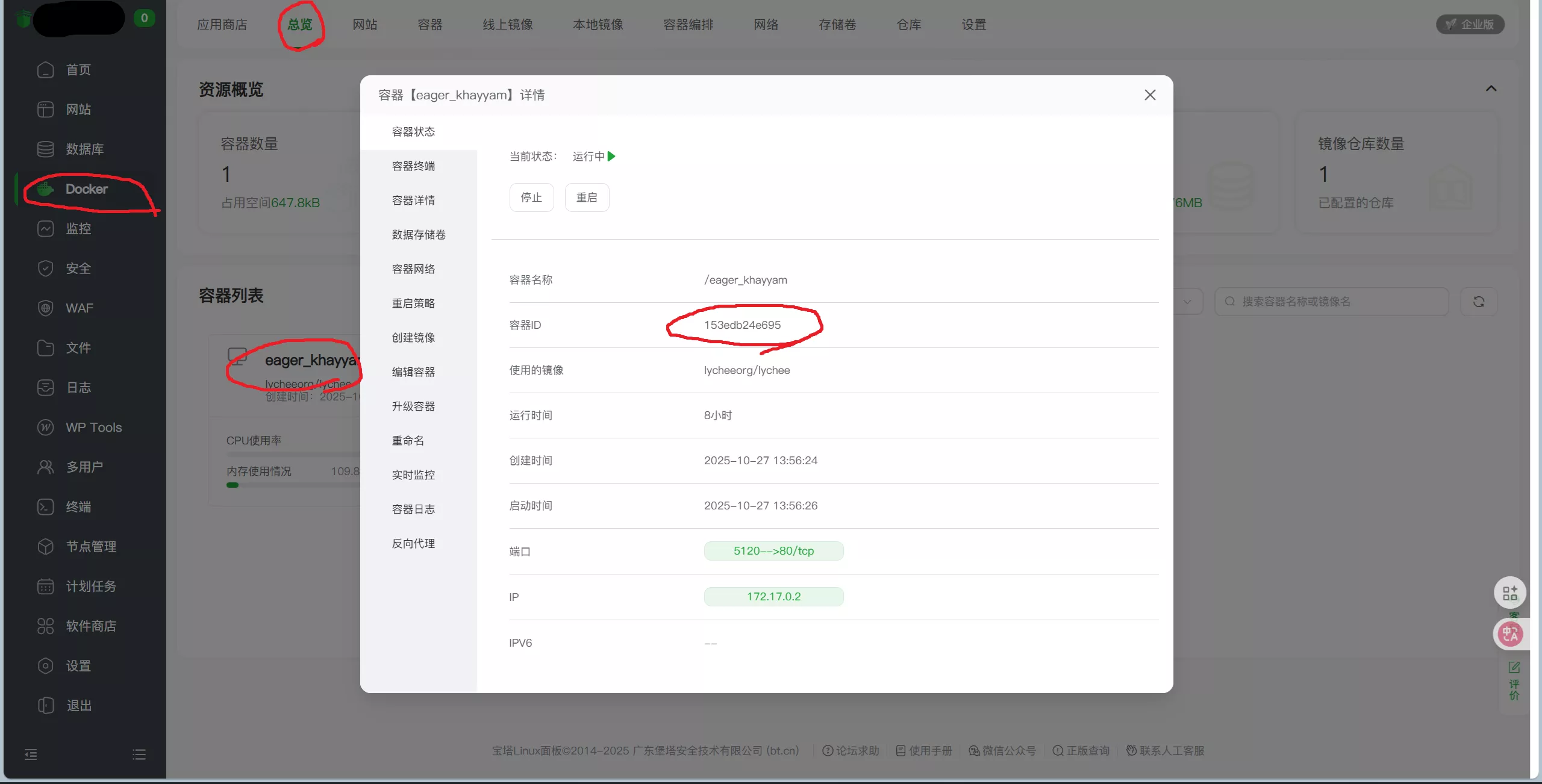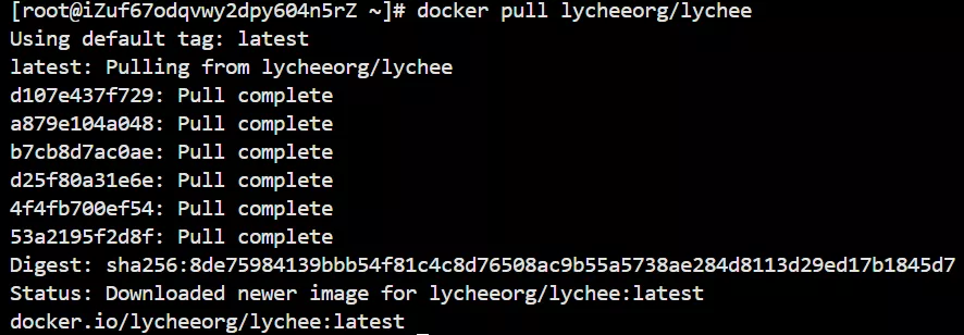 docker已经安装完成,接下来我们进入到终端中安装lychee。