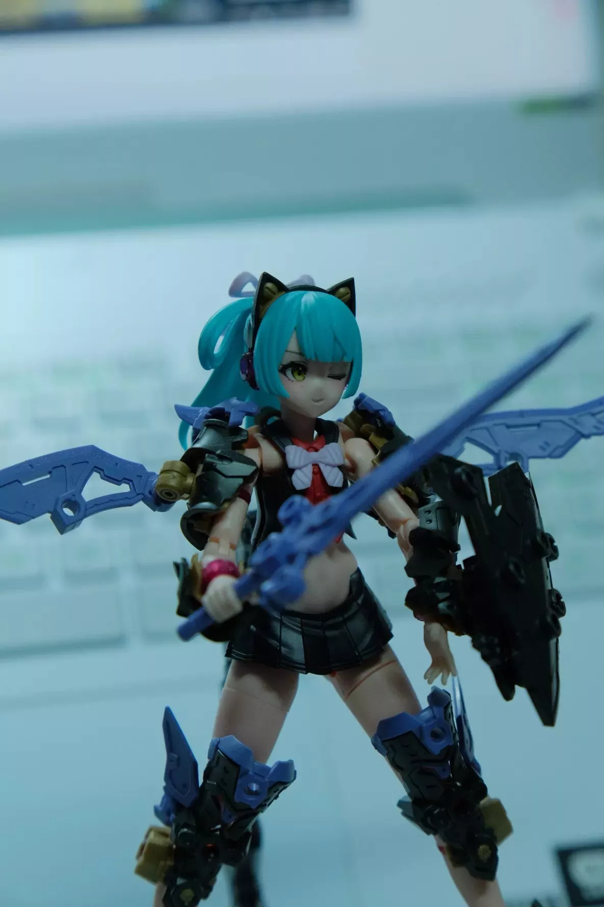 穿上装甲的机娘虽然完成度变高了,但由于装甲限制了肢体关节的活动,很多姿势反而摆不出来了。至此我的第一次机娘拼装结束了。虽然用时长达半年之久,不过它带给我的兴奋一直持续至今。如果有米有机会的话,可能我又会在某一天晚上悄然下单下一个女神武装(≧∀≦)ゞ。
